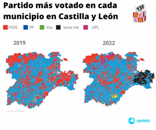 Partido más votado en cada municipio en las elecciones de Castilla y León - EPDATA