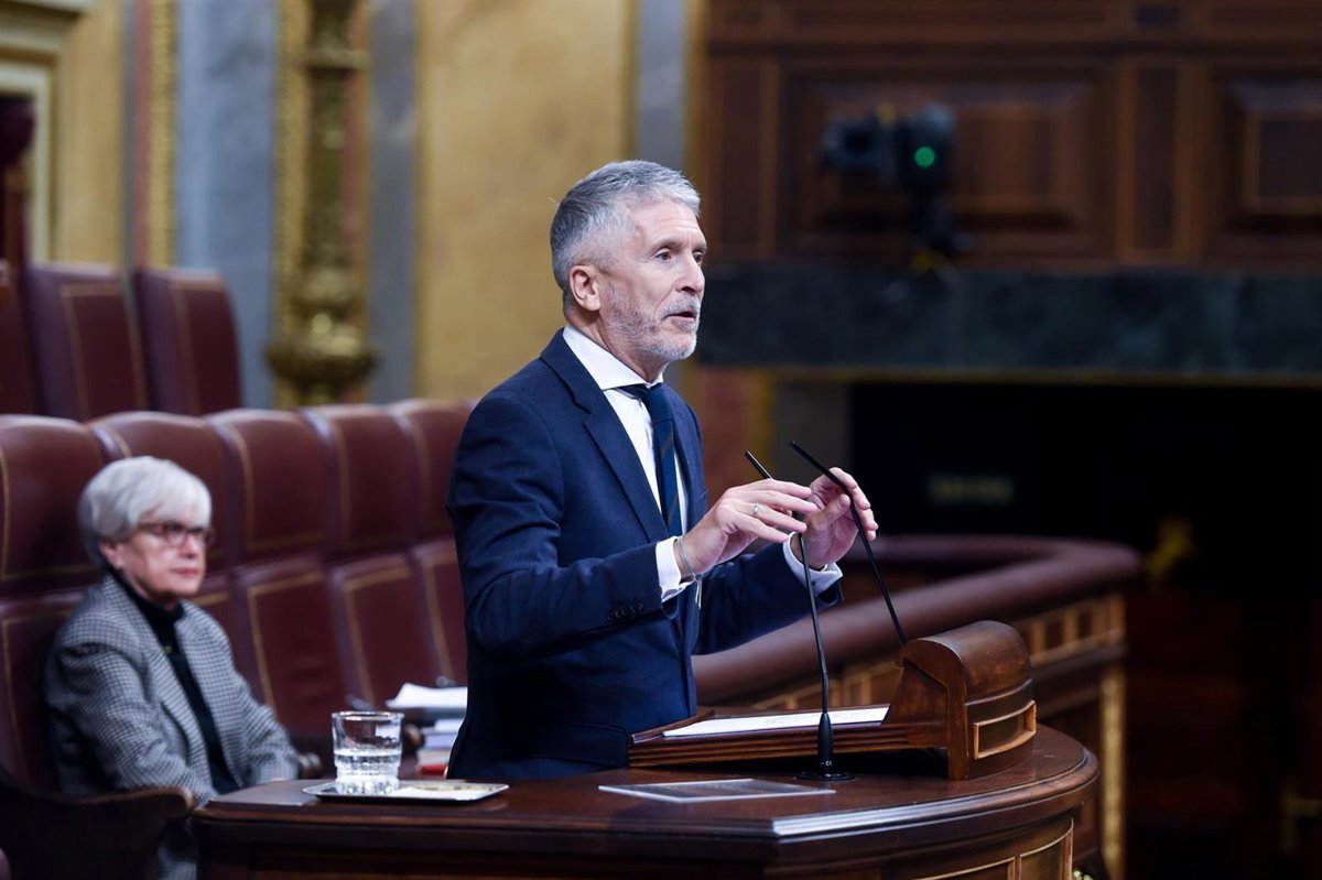 El ministro del Interior, Fernando Grande-Marlaska, interviene durante una sesión de control al Gobierno, en el Congreso de los Diputados - Gustavo Valiente - Europa Press