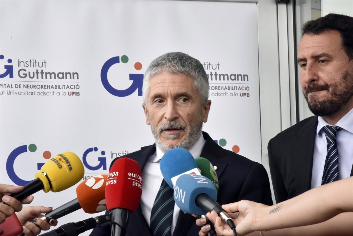 El ministro de Interior, Fernando Grande-Marlaska, ofrece declaraciones a los medios en Barcelona, Cataluña (España). - David Oller - Europa Press