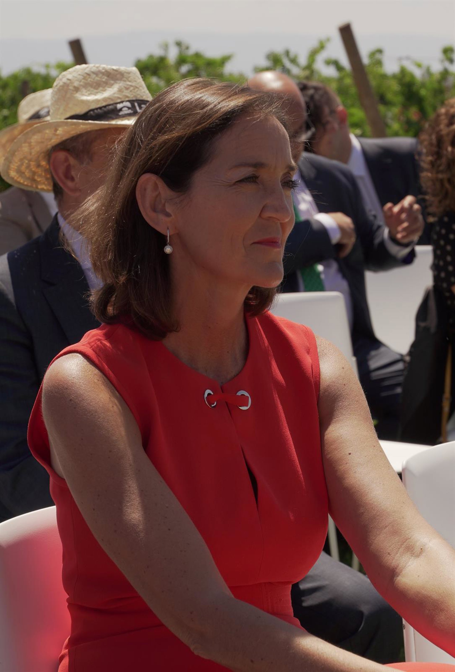 La ministra de Industria, Comercio y Turismo, Reyes Maroto, durante la presentación de la 7 Conferencia Mundial de la Organización Mundial de Turismo (OMT) sobre Turismo Enológico 2023, a 11 de julio de 2022, en Briones, La Rioja (España). - Alberto Ruiz - Europa Press