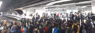 En Sants no ha salido ningún AVE desde antes de las 17 horas, cuando manifestantes procedentes de una protesta de estudiantes han bajado a las vías, y posteriormente se ha cerrado el acceso a la estación, aunque sí que se permite salir a los viajeros que llegan con algunas trenes de Rodalies.