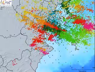 Un total de 2.520 rayos alcanzaron la Comunitat Valenciana este lunes 30 de agosto, más del doble si se contabilizan los que cayeron en aguas marítimas limítrofes, según los datos de la Agencia Estatal de Meteorología (Aemet).