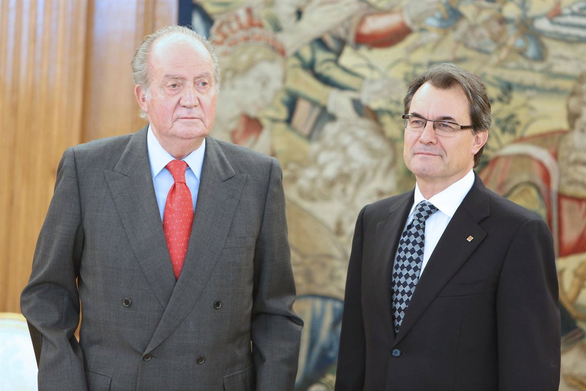 Don Juan Carlos y el presidente del gobierno catalán han posado brevemente para los reporteros gráficos, antes de abandonar la sala para comenzar la audiencia.