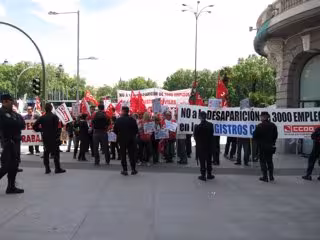 Una pancarta con el lema 'No a la desaparición de 3.000 empleos en los Registros Civiles', ha presidido la movilización en la que los manifestantes han protestado con pancartas y pitos al tiempo que han coreado gritos de "Caamaño, dimisión" y "esto no es un Gobierno, es una copia de la CEOE".