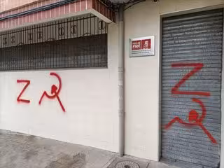 Las fachadas de las sedes socialistas de Derio, Trápaga y el barrio barakaldés de Cruces aparecieron con el símbolo de la hoz y el martillo, y la Z, que identifica los vehículos militares de Rusia.
