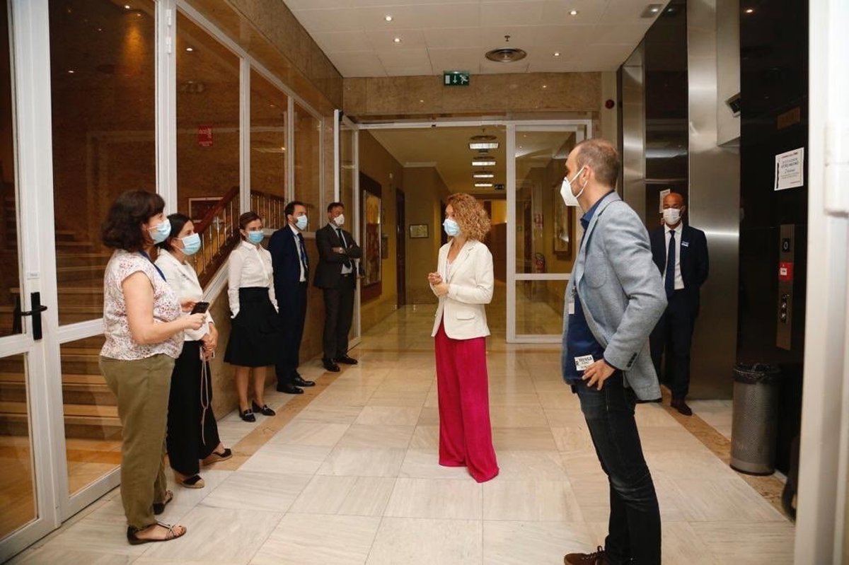 La presidenta del Congreso, Meritxell Batet, ha recibido este miércoles a los informadores que han vuelto a la Cámara después de tres de meses sin pisar la sede de la soberanía nacional como consecuencia de las medidas que tomó la institución, antes incluso de que se decretara el estado de alarma por el coronavirus.