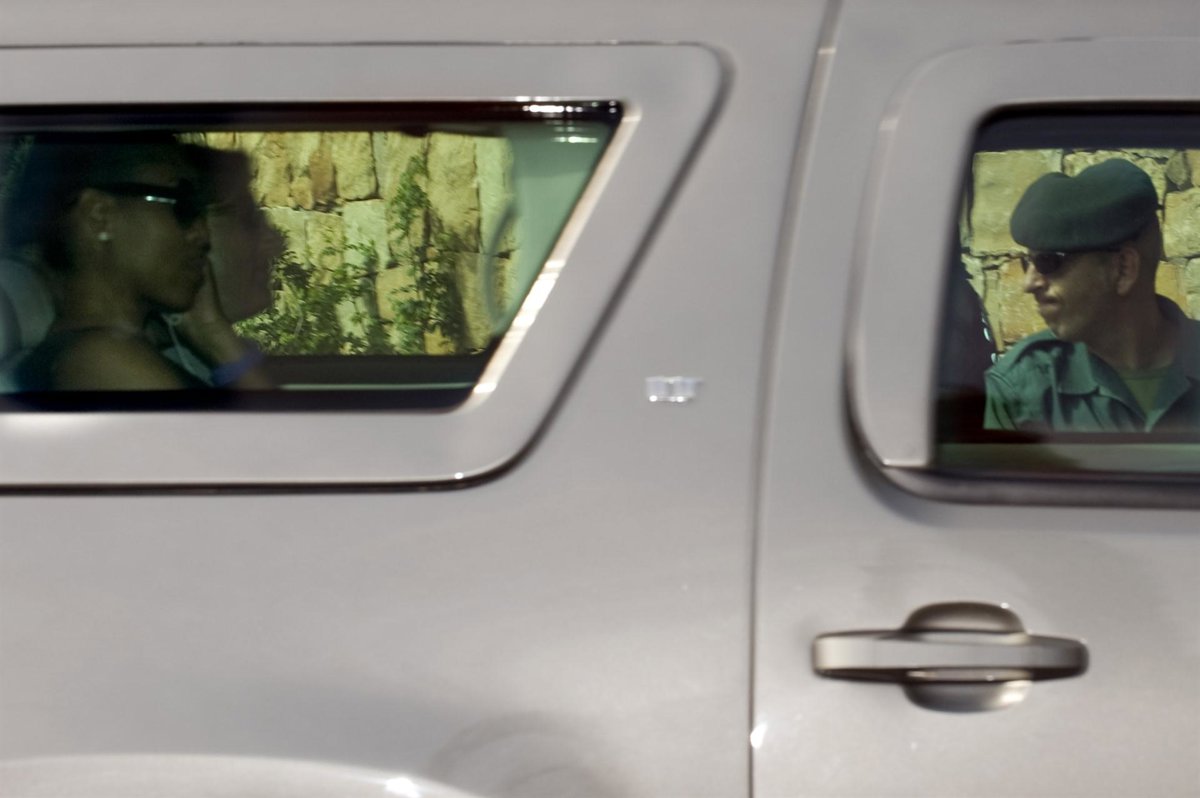 Varios vehículos recogieron a pie de pista, en la T1, en medio de un fuerte dispositivo de seguridad, a la comitiva que acompaña a la primera dama de EEUU para su traslado al hotel Villa Padierna, donde tienen 60 habitaciones reservadas y adonde llegaron sobre las 11.45 en 14 coches.