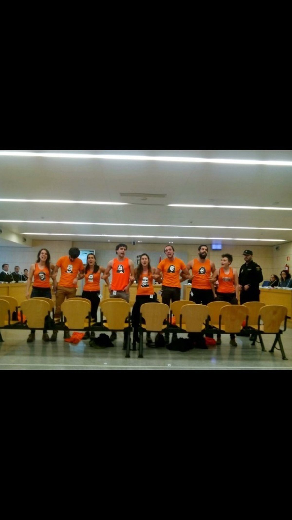 Los ocho acusados, abrazados ante el tribunal presidido por la juez Ángela Murillo, han proferido, además, gritos de "adelante la juventud vasca", secundado por el público que abarrotaba la sala de vistas. El juicio se ha interrumpido durante unos minutos y, finalmente, ha quedado aplazado al próximo 11 de junio.