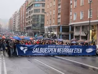 Los asistentes han llegado sobre las 18.30 horas a la plaza del Ayuntamiento de Bilbao donde miembros de Herrira han dado lectura a un comunicado en el que han defendido el respeto a los derechos humanos y la necesidad de terminar con "las medidas de excepción", ya que mantenerlas es garantía de "consecuencias irreparables".