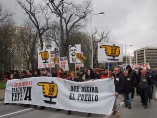 Los asistentes a la manifestación, más de 10.000 personas según los organizadores y unos 6.000 según la Policía Municipal de Pamplona, han partido pasadas las 18 horas desde el parque de Antoniutti tras la pancarta 'Barcina go home. Que decida el pueblo. Barcina vete ya' y han finalizado sobre las 19.30 horas frente a la sede del Gobierno de Navarra.