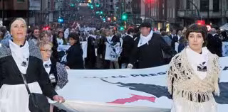 Tras ellos, discurren hileras de familiares de reclusos con carteles en los que se exhibe la misma imagen, mientras corean la frase "Euskal Presoak Etxera (Los presos vascos a casa)".