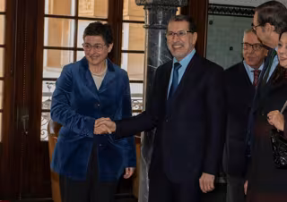 La ministra de Asuntos Exteriores, Unión Europea y Cooperación, Arancha González Laya se reúne con el jefe de Gobierno del Reino de Marruecos, El Othman, en Rabat (Marruecos), a 24 de enero de 2020. - Ministerio de Asuntos Exteriores