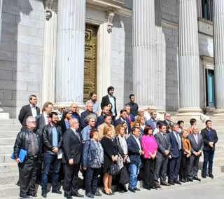 Representantes de todos los grupos parlamentarios han guardado este miércoles un minuto de silencio en la llamada Puerta de los Leones del Congreso para condenar el bombardeo de Gernika en la Guerra Civil, del que este año se cumple su 80 aniversario, y para honrar a sus víctimas.