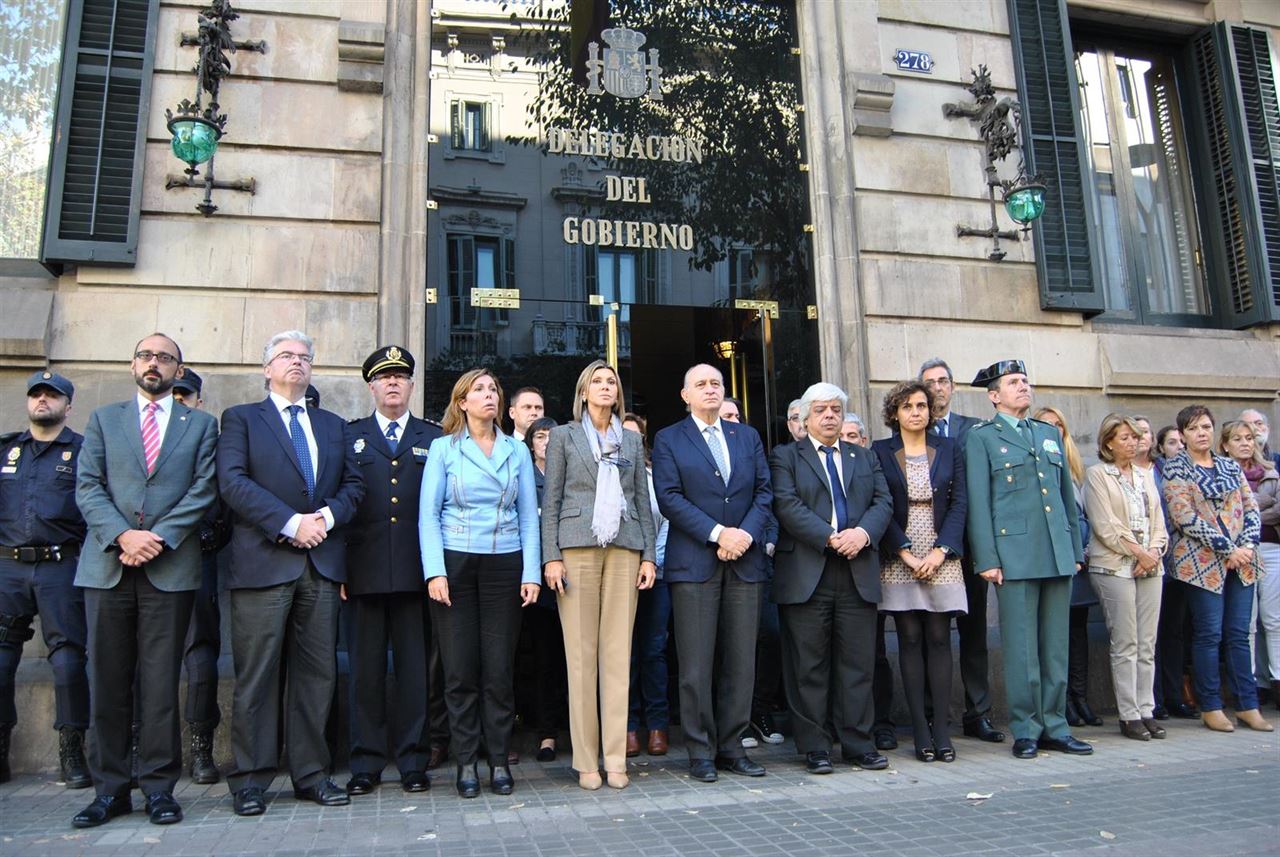 En Barcelona, el ministro del Interior, Jorge Fernández Díaz, ha presidido el minuto de silencio a las puertas de la Delegación del Gobierno.