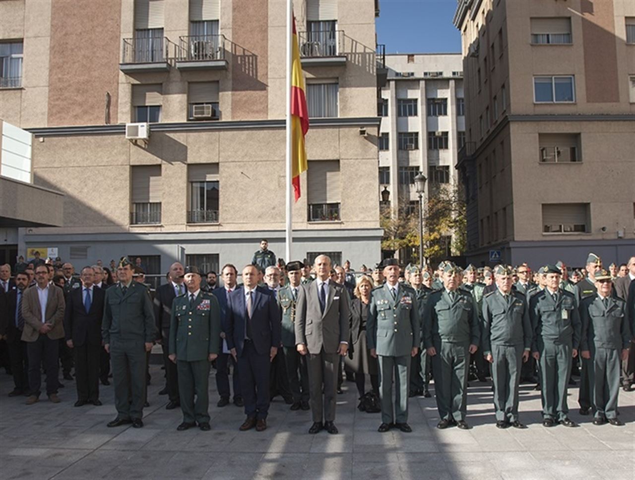 La Guardia Civil, encabezada por su director general, Arsenio Fernández de Mesa, también se ha unido a los homenajes con un minuto de silencio en el Patio Central de la Dirección General.