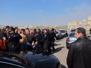 Los agentes de Policía que estaban en el lugar intentaron disuadir sin éxito a los jóvenes para que dejaran paso al vehículo oficial del presidente autonómico, lo que motivó que a continuación se desplazaran al lugar tres furgones policiales para reforzar el dispositivo.