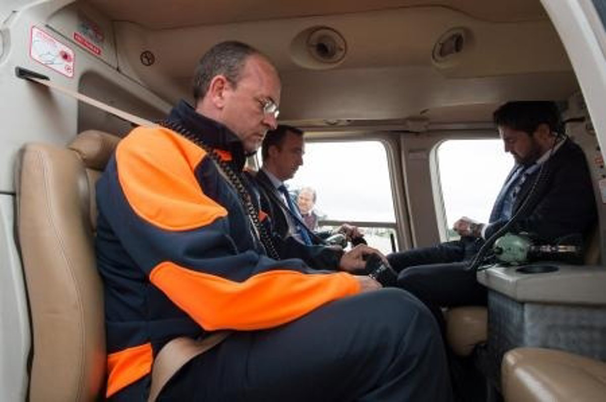 El presidente del Gobierno de Extremadura, José Antonio Monago, junto al secretario de Estado de Seguridad, Francisco Martínez, han efectuado este jueves un recorrido de reconocimiento en helicóptero sobre las zonas afectadas por las recientes inundaciones en la región.