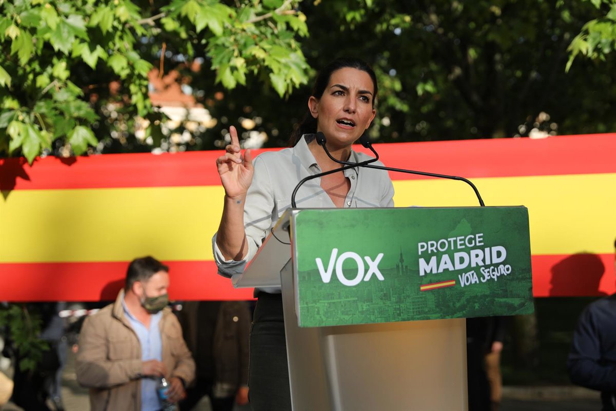 La candidata de Vox a la Presidencia de la Comunidad de Madrid, Rocío Monasterio, ha criticado este jueves que se hable de un posible apoyo de su homólogo en el PSOE, Ángel Gabilondo, a la presidenta de la Comunidad y candidata a la reelección por el PP, Isabel Díaz Ayuso, y ha afirmado que el PP no puede "tener dudas".