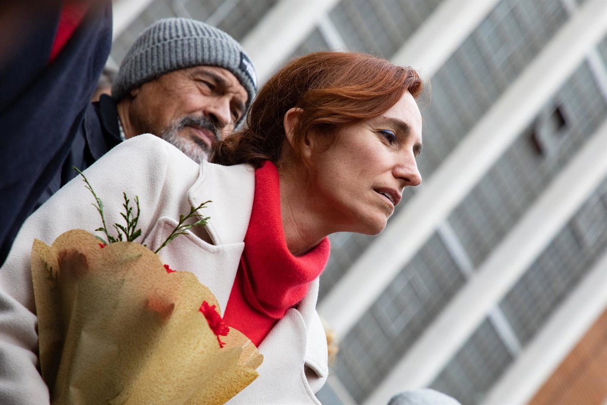 La ministra de Sanidad, Mónica García, asiste a la ofrenda floral conmemorativa del 48 aniversario del asesinato de los Abogados de Atocha, a 24 de enero de 2025, en Madrid (España). - Rafael Bastante - Europa Press