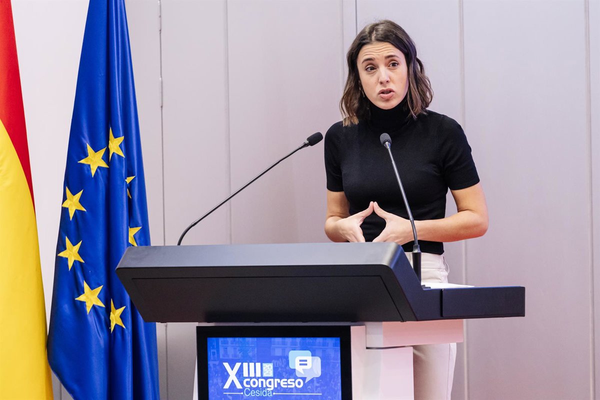 La ministra de Igualdad en funciones, Irene Montero, interviene durante el acto de apertura del XIII Congreso CESIDA, a 20 de octubre de 2023, en Madrid (España). El encuentro ha sido organizado por la Coordinadora estatal de VIH y sida (CESIDA). - Carlos Luján - Europa Press