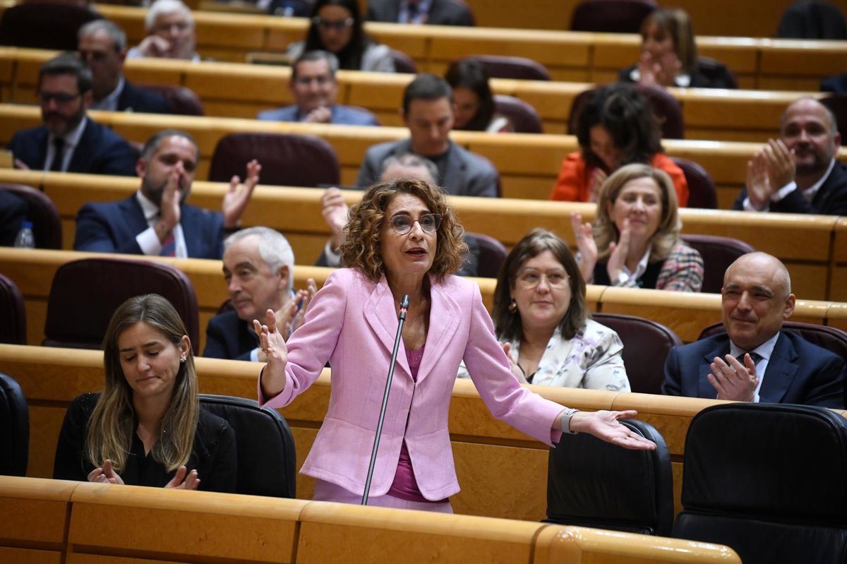 La vicepresidenta primera y ministra de Hacienda, María Jesús Montero, durante una sesión de control, en el Senado, a 25 de febrero de 2025, en Madrid (España). - Fernando Sánchez - Europa Press