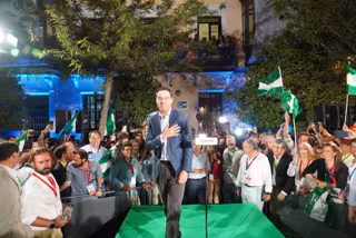 El candidato del PP-A a la reelección como presidente de la Junta, Juanma Moreno, ha manifestado, tras la mayoría absoluta que ha logrado en las elecciones autonómicas de este domingo, que hoy "hemos hecho historia" y se ha comprometido a gobernar para "todos", garantizando que los 58 escaños que ha logrado "no van a significar ni soberbia ni prepotencia, sino eficacia y determinación" para Andalucía progrese.