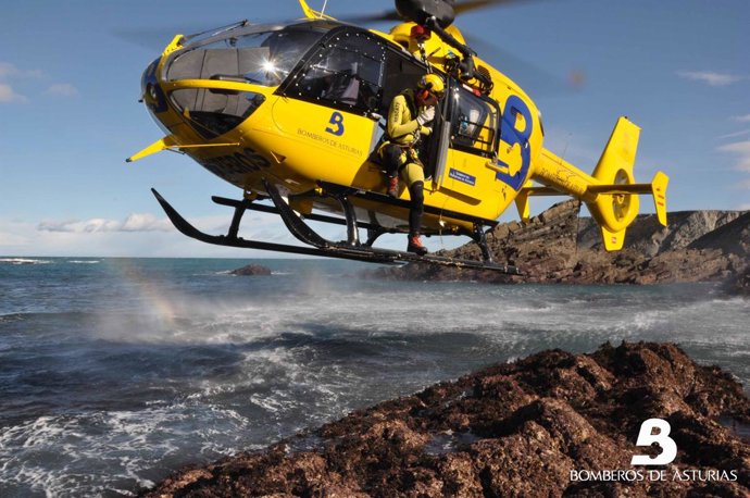 El Grupo de Rescate de Bomberos de Asturias a bordo del Helicóptero Medicalizado de Bomberos de Asturias ha rescatado el cadáver de un pescador, que responde a las iniciales M.E.M.R., de 59 años, que falleció en un pedrero situado a un kilómetro de la vertiente oeste del Faro Vidio, en Oviñana, Cudillero, según informó el 112-Asturias en una nota de prensa.