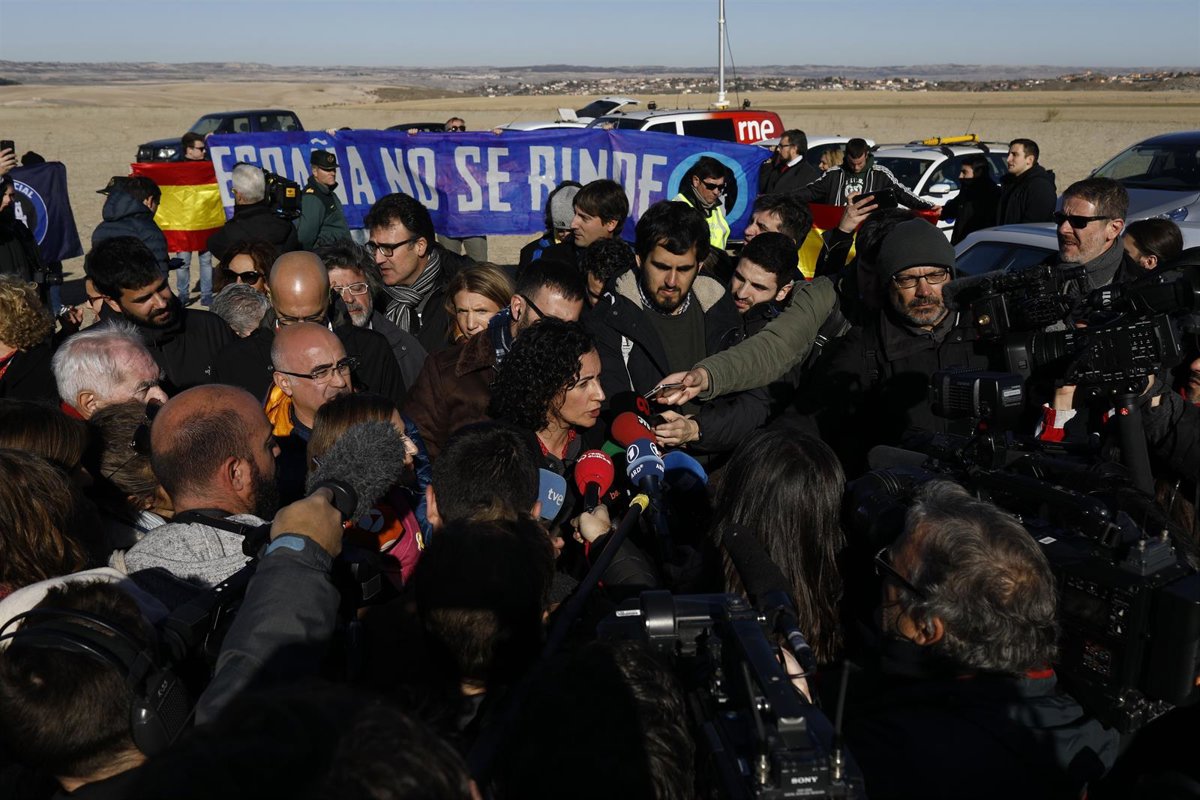 Las inmediaciones de la cárcel madrileña de Estremera, lugar elegido por ERC para un acto simbólico de campaña, ha sido escenario esta mañana de un revuelo de más de un centenar de periodistas, unos 30 políticos de Esquerra y temas del cancionero popular español, en un acto que ha destacado por su brevedad tras ser boicoteado por una decenda de miembros del grupo ultraderechista Hogar Social Madrid.