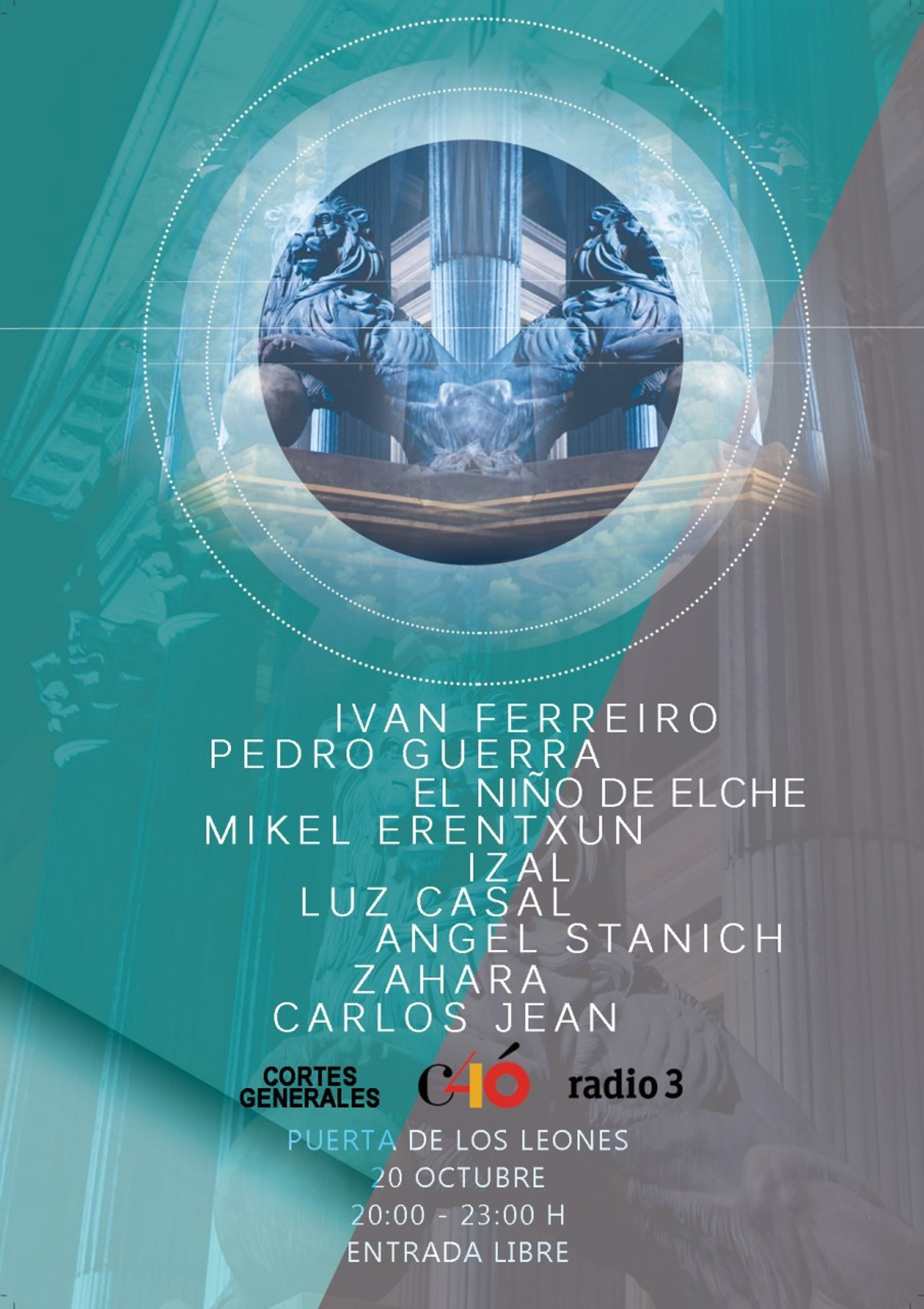 La escalinata de la Puerta de los Leones del Congreso será el escenario este sábado de un concierto homenaje a la música española de los últimos 40 años y en el que participarán artistas nacionales como Iván Ferreiro, Izal, Mikel Erentxun, Luz Casal, Pedro Guerra, El Niño de Elche, Zahara, Carlos Jean o Ángel Stanich.