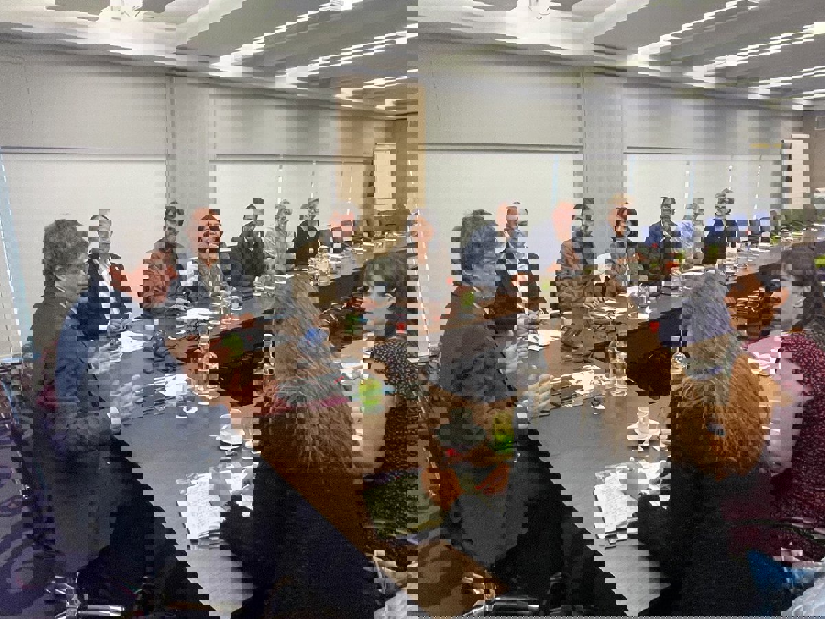El expresidente de la Generalitat, Carles Puigdemont (1i), durante una reunión con la cúpula de Junts para decidir sobre el pacto con el PSOE, a 2 de noviembre de 2023, en Bélgica. Carles Puigdemont ha convocado hoy a la cúpula de Junts en Bélgica para - Junts