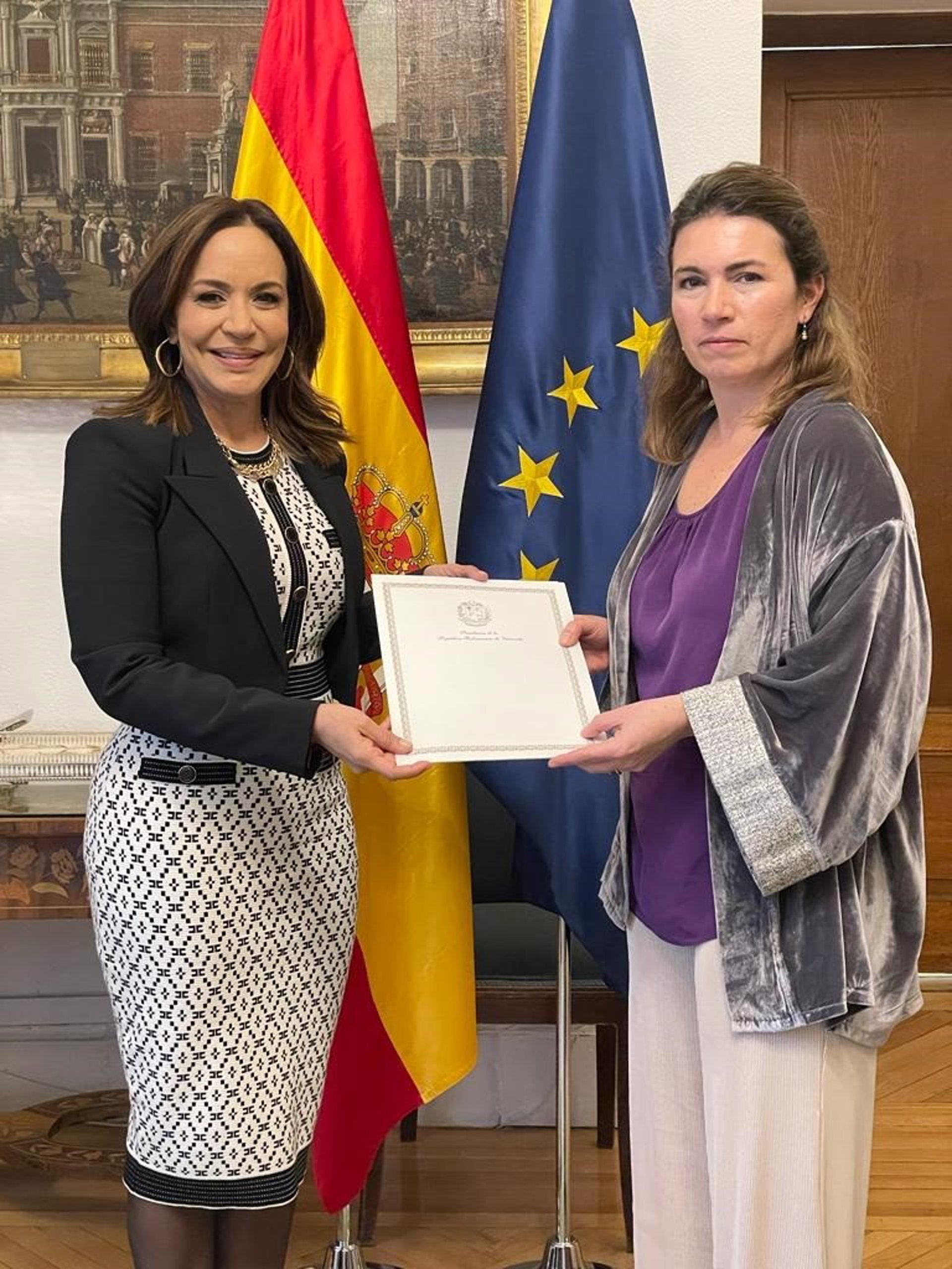 La nueva embajadora de Venezuela, Coromoto Godoy, presenta sus copias de estilo en el Ministerio de Asuntos Exteriores - EMBAJADA DE VENEZUELA