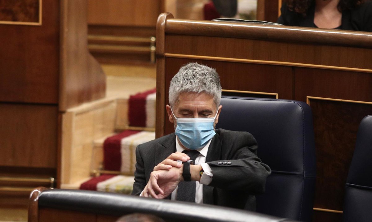 El ministro de Interior, Fernando Grande-Marlaska, consulta la hora durante una nueva sesión de control al gobierno en el Congreso - EUROPA PRESS/E. Parra. POOL - Europa Press