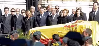 Los funerales se iniciaron a las 10.30 horas, con la asistencia de la viuda y familiares de la víctima, los Príncipes de Asturias, los miembros del Gobierno central María Teresa Fernández de la Vega, Carme Chacón y Alfredo Pérez Rubalcaba, el presidente del Senado, Javier Rojo, el lehendakari, Juan José Ibarretxe, y representantes de todos los partidos políticos.