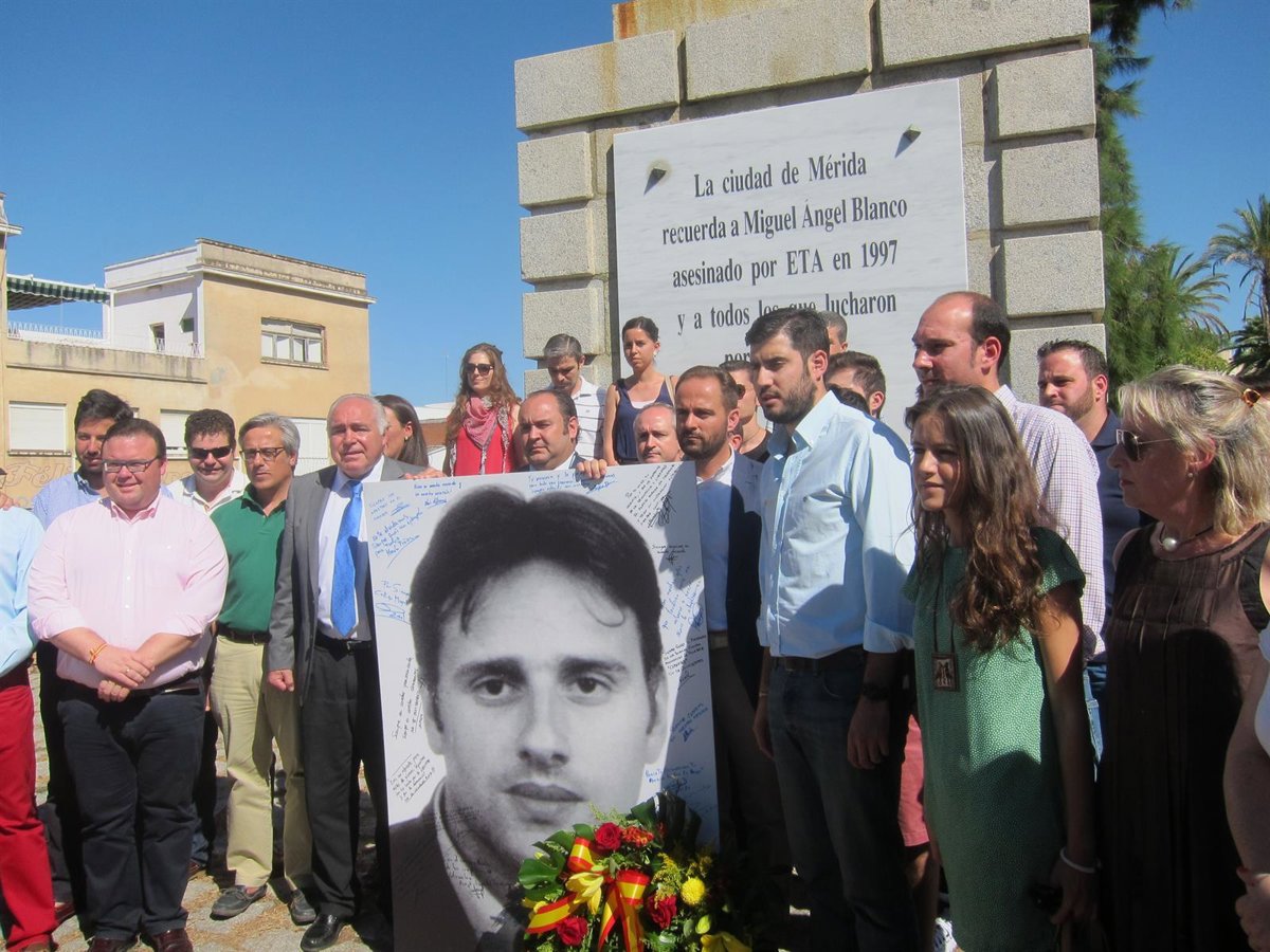 El vicesecretario de Organización del PP extremeño, Juan Parejo, ha reivindicado "la memoria, la dignidad y la justicia para Miguel Ángel Blanco y para todas las víctimas del terrorismo", durante una ofrenda floral realizada este viernes ante el monolito existente en Mérida (Badajoz) en recuerdo del citado concejal asesinado por ETA.