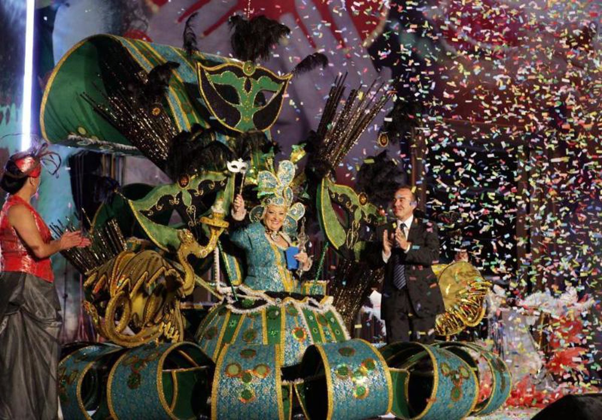 María Luisa Hernández Abraham con la fantasía 'Mi nombre es: Rocío Fandango Jarana', diseñada por Patricio Morales y representando a la Asociación Cultural Comparsa Río Orinoco.