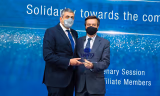 El director general de Ifema, Eduardo López-Puertas, recogió este reconocimiento de manos del secretario general de la OMT, Zurab Polilikashvili, en un acto en el que se puso de manifiesto el apoyo de la institución a las necesidades de capacidad sanitaria manifestada por las autoridades autonómicas y locales el pasado mes de marzo.