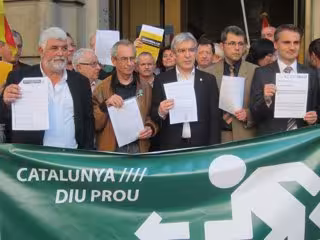 Los once ayuntamientos han formalizado el pago de sus impuestos en las respectivas delegaciones de la agencia tributaria catalana en Barcelona, Girona y Tarragona, y en la capital catalana los alcaldes han estado acompañados por una treintena de independentistas y miembros de la plataforma 'Cataluña diu Prou' --'Cataluña dice basta' en castellano--.