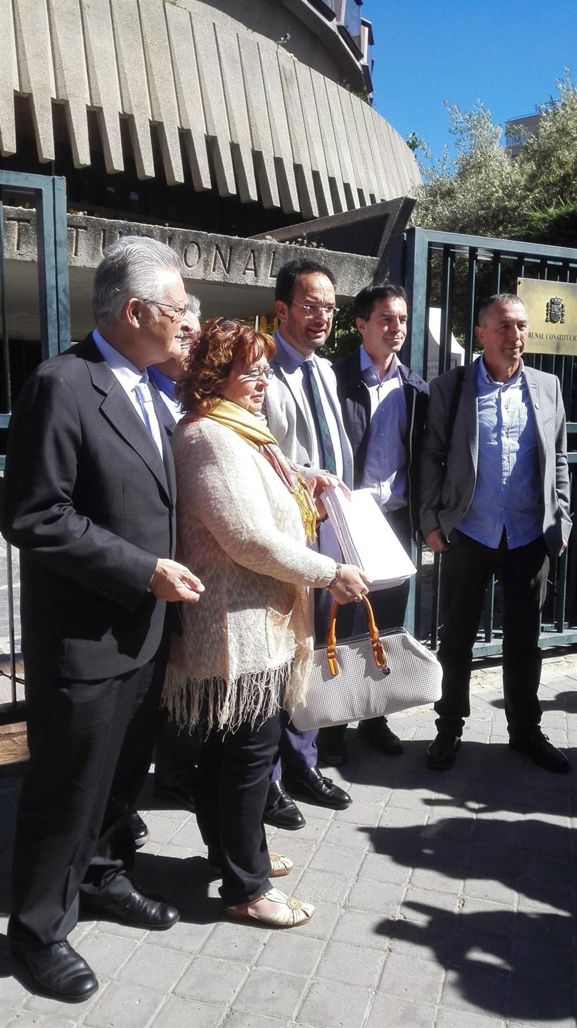 El portavoz socialista en el Congreso, Antonio Hernando, la diputada de IU Caridad García, el portavoz adjunto de UPyD, Andrés Herzog, y el diputado de Compromís, Joan Baldoví, han acudido a la sede del Tribunal Constitucional para presentar el recurso contra "la Ley de Mordaza" y las "devoluciones en caliente", que en la norma se definen como 'rechazos en frontera'.