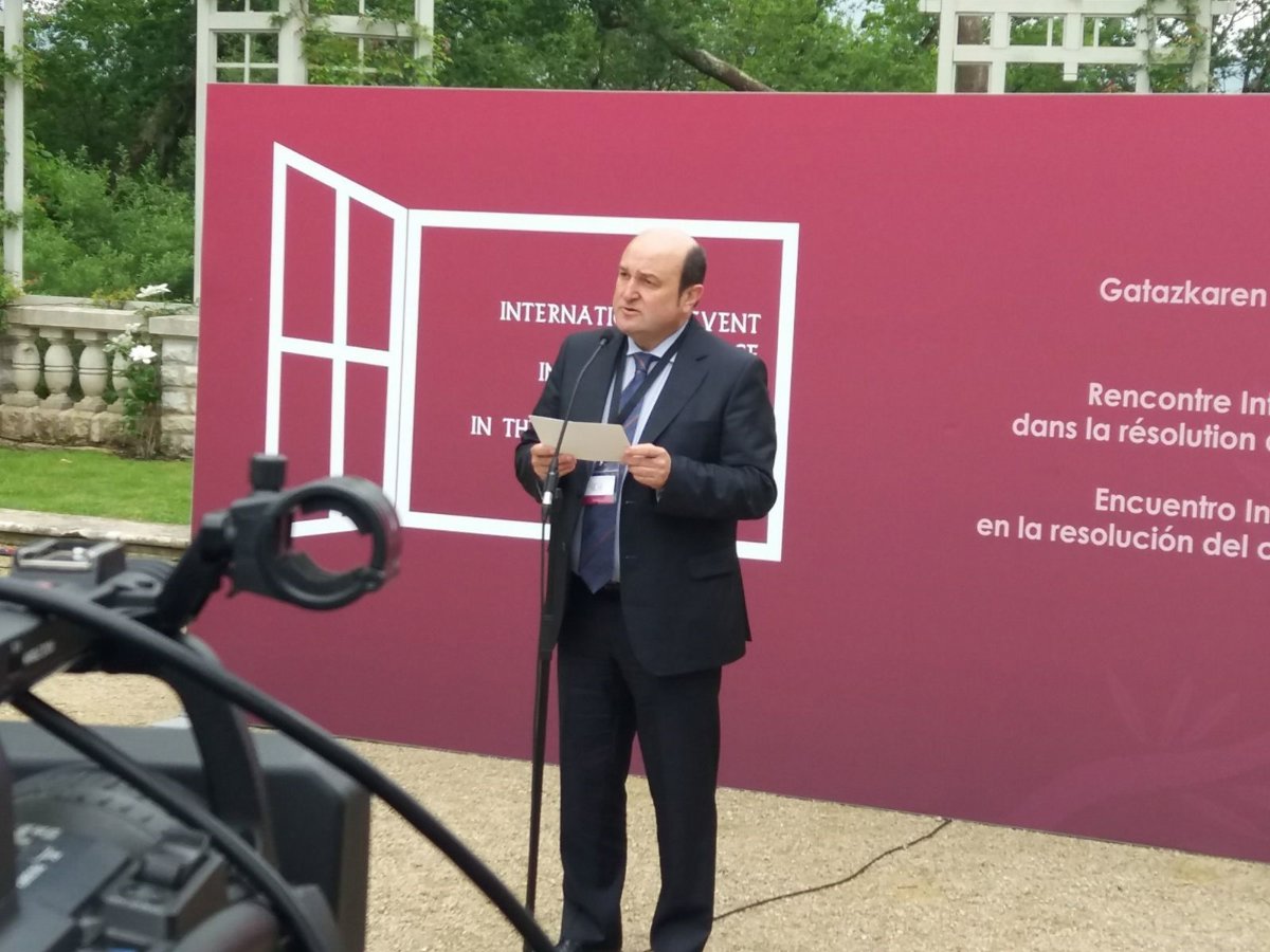 Una vez concluida la declaración que ha puesto final a la Conferencia Internacional de Kanbo, celebrada en la villa Arnaga, Ortuzar, que ha asistido al encuentro, ha dado lectura a un pronunciamiento en nombre de la formación que preside.