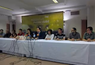 En la comparecencia, en la que han enviado un "enorme y cálido abrazo" a los cinco condenados, también han estado presentes Joseba Alvarez, Joseba Permach, Marisa Alejandro, Rufi Etxeberria, Marije Fullaondo, Hasier Arraiz, Txelui Moreno y Juan Joxe Petrikorena.