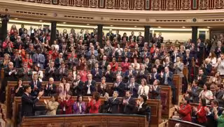 El candidato a la Presidencia del Gobierno, Pedro Sánchez, ha recibido una ovación de sus diputados puestos en pie, así como de los de Unidas Podemos, después de que la presidenta del Congreso, Meritxell Batet, leyera el resultado de la votación por la que ha sido investido presidente del Ejecutivo.