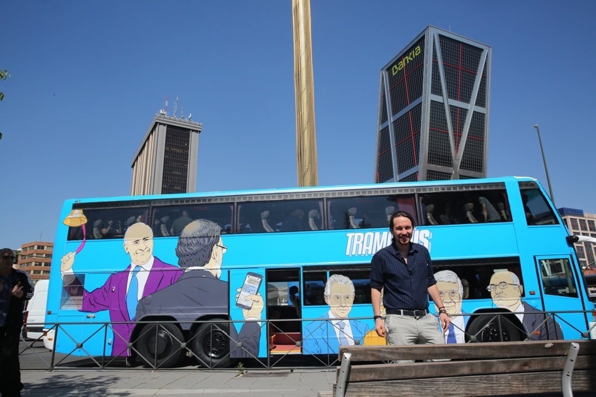 El secretario general de Podemos, Pablo Iglesias, protagonizará este domingo un mitin en la Puerta del Sol a las 18.00 horas, como broche final de la ruta por la Comunidad de Madrid que ha realizado a lo largo de esta semana su polémico 'Tramabús' para "desenmascarar" la red de relaciones de poder que, a su juicio, existe entre las élites económicas y políticas, según han informado a Europa Press fuentes de la formación morada.