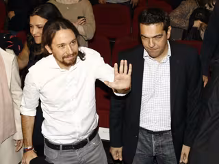 Por su parte, Tsipras arropó a Iglesias el pasado 15 de noviembre en su proclamación como secretario general de Podemos. En aquel acto que puso fin a la asamblea constituyente del partido de Iglesias, celebrado en el Teatro Nuevo Apolo de Madrid, Tsipras auguró que los españoles, con Podemos, y los griegos, con Syriza, cambiarían "el camino de toda Europa". "Es la hora de que se vaya Rajoy y de que se vaya Samaras", sentenció.