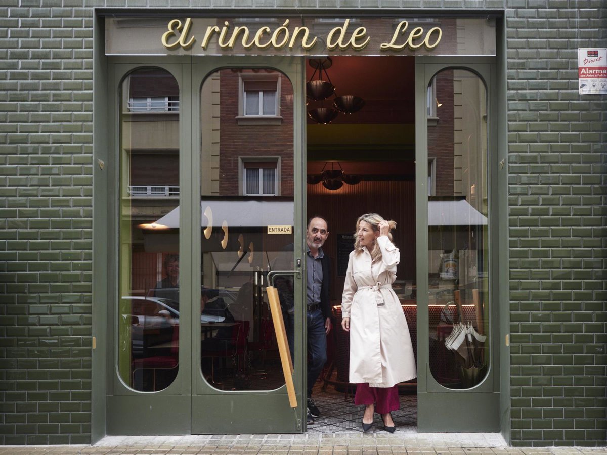 El filósofo Daniel Innerarity y la vicepresidenta segunda del Gobierno, Yolanda Díaz, a su salida de un encuentro en Pamplona, Navarra. - Eduardo Sanz - Europa Press