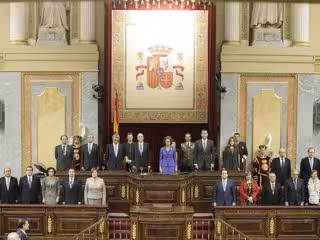 Los Reyes y los Príncipes de Asturias fueron recibidos este martes en el Salón de Plenos del Congreso con una cerrada ovación de los diputados y senadores, puestos en pie. La calurosa bienvenida duró dos minutos pero no contó con la participación de todos, pues representantes de IU, UPyD y PNV se negaron a secundar tantos aplausos.