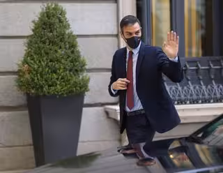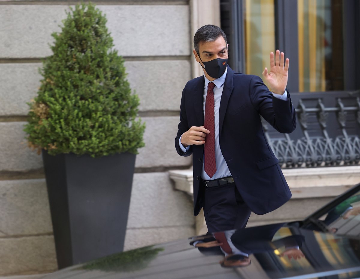 El presidente del Gobierno, Pedro Sánchez, saluda a su llegada al pleno en el que se debate la moción de censura planteada por Vox. - EUROPA PRESS/E. Parra. POOL - Europa Press