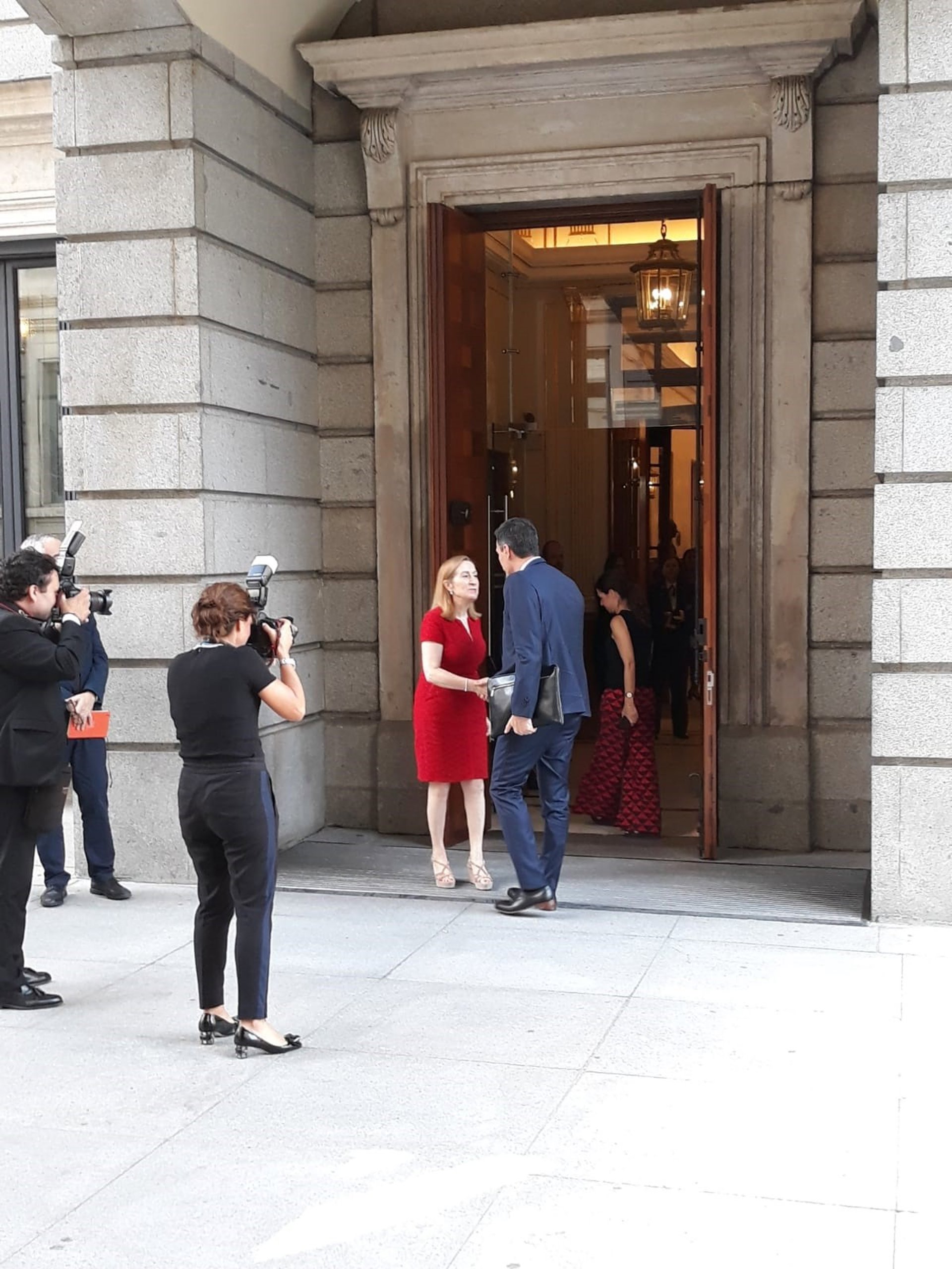 Sánchez ha llegado alrededor de 17.15 horas a la Cámara Baja, en cuyo patio le esperaba la presidenta. Tras saludarse, ambos han entrado en el Palacio para reunirse en el despacho de Pastor.