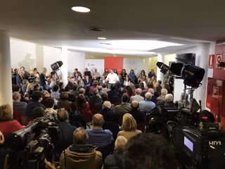 López ha estado más de cuarenta minutos charlando con los socialistas que se han acercado al centro cultural en Fuenlabrada, donde se han superado las previsiones iniciales de aforo. En un primer lugar, se preparó un recinto con 150 sillas pero, cuando comenzó a llegar gente, se trasladó a otra sola y se colocaron otras 50 sillas. Finalmente más de un centenar de personas lo han seguido en pie.