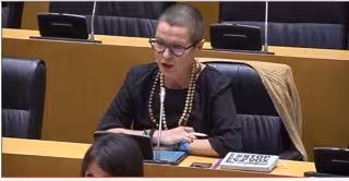 Cuando intervenía en el examen parlamentario a la periodista Gabriela Cañas, candidata del Gobierno para presidir la Agencia Efe, la diputada de ERC tenía sobre la mesa un cartel con la leyenda 'Stop Vox'.