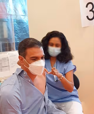 El presidente del Gobierno, Pedro Sánchez, recibe la tercera dosis de la vacuna contra la covid 19 en el Hospital Puerta de Hierro de Madrid - PRESIDENCIA DEL GOBIERNO